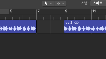 그리고 빈 공간을 메꿔주기 위해서 잘려진 뒷부분을 마우스로 당겨주면 자르고 싶은게 잘려진 음원이 만들어집니다.