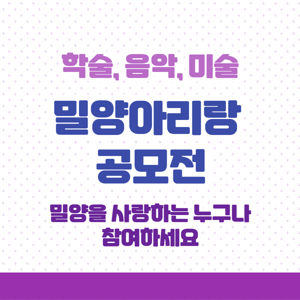 밀양시 주최, 밀양문화관광재단 주관으로 밀양아리랑 공모전을 개최합니다.
