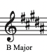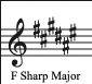 샾이 5개 붙은 경우까지는 그대로 적용을 하면 됩니다. 그러나 샾이 6개 붙은 경우 파, 도, 솔, 레, 라, 미에 샾이 붙게 되고 마지막에 샾이 붙은 미의 한 칸 위의 음 '파'에는 조표에 파에 샾이 붙어있는 상태이기 때문에 자연스럽게 파#이 되며 이 경우 조성은 올림바장조(F# Major)가 됩니다.