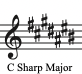 마찬가지로 샾이 7개 붙은경우 마지막에 샾이 붙은 시의 한음 위의 도가 으뜸음이지만 조표에서 도에 샾이 붙어있는 상태이므로 도#이 으뜸음이 되고 올림다장조(C# Major)가 됩니다.