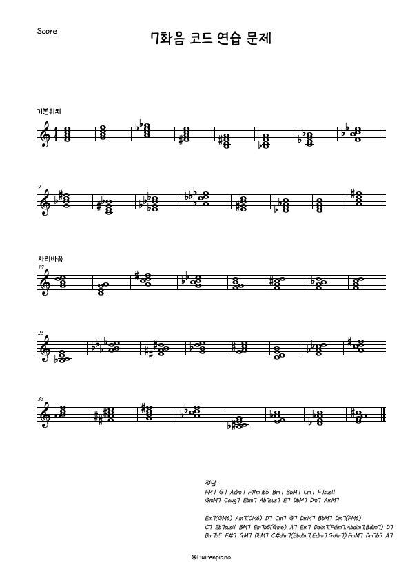 카테고리 없음 7화음 코드 예제 리멜스토리 2024. 12. 4. 16:44 반응형 안녕하세요. 7화음에 대해 공부하셨다면 풀어볼 수 있는 예제입니다. 정답은 오른쪽 하단에 있습니다. 궁금한 점이 있으시다면 문의주세요. 반응형 공유하기 게시글 관리 리멜스토리 저작자표시 (새창열림)