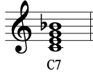 C코드인 도미솔에 단7음인 시b을 더해서 도, 미, 솔, 시b 으로 이루어진 화음이 C7코드인 것입니다.